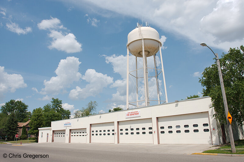 This is across Arch Avenue from city hall. First Avenue is in the left background. The city's water tower is behind the fire station.
