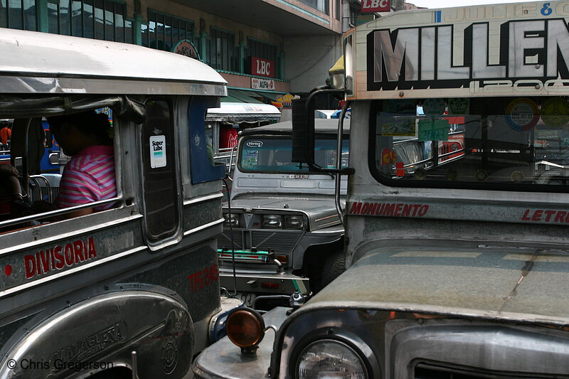 Bumper to Bumper Jeepneys, Three Rows Deep, in Manila, Philippines